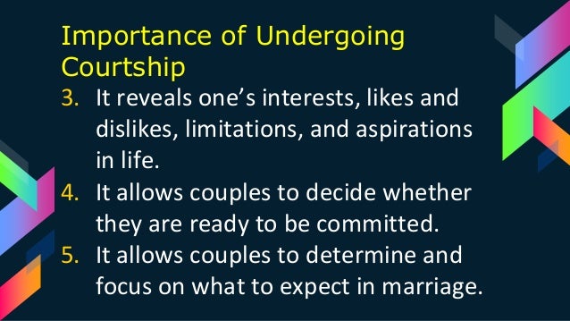 While traditional courtship had its own set of rules and rituals, dating, as it evolved, became less in 1965, two harvard students created what is known as operation match to make dating easier for young people. To court, to solicit eagerly; During a courtship couples date to get to know each other and decide if there will be an engagement and marriage. The advantage of dating and courtship is we experience bliss especially in the beginning of the relationship. The couples may either go outâ in public or talk privately over.